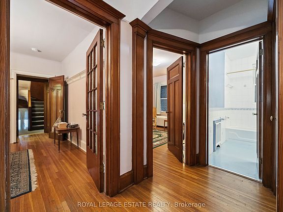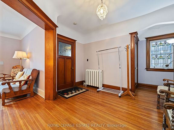 Incredible location adjacent to Playter Estates! This large, impeccably maintained 7 Bedroom century property is zoned for residential and commercial purposes. Currently configured as a single family home with generously proportioned rooms, high ceilings, beautiful original details and hardwood floors throughout the principal rooms. Bonuses include a second floor family room with gas fireplace, lower level recreation room, sauna, and plenty of storage! Garden is large and tidy. Don't miss this incredibly spacious and versatile home in an superb central location close to transit, schools and minutes to downtown. Access 3 car parking from lane, double detached garage.