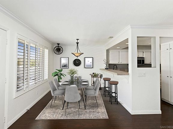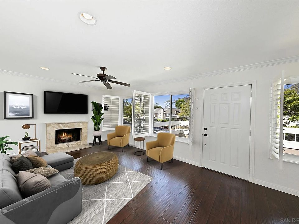 This Coastal Close, Well-appointed, 2 bedrooms with Jack & Jill bathroom, a great top unit with lots of natural light. A spacious living room, cozy fireplace, dining area. The beautiful kitchen features white cabinets, designer tile countertops, and stainless steel appliances. Wood & tile floors throughout the home, Ceiling fans, Window Shutters, newer windows, newer remodeled bathroom shower. Assigned carport and storage area. Beautifully landscaped common areas, community pool, and your front balcony is a great place to sit out, relax and enjoy!