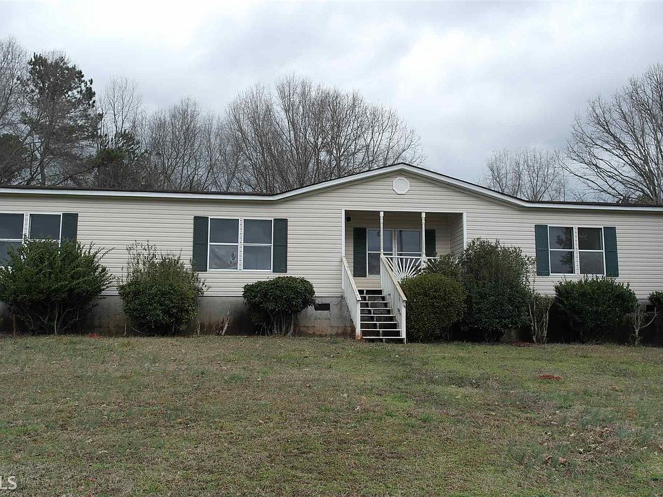 Spacious double wide mobile home on 1.5 acres not in a subdivision! Features include Master on Main with large Master Bath with separate tub/shower and huge walk in closet. Guest bedrooms located on other side with full bathroom. Large Living room with fireplace, open kitchen/breakfast area, laundry/mud room. Carpet and laminate hardwood throughout, installed a year ago. Large back deck, fenced in yard, and outbuilding. Well water. Being sold as-is, no disclosures. Cash or conventional loan only. East Jackson schools.