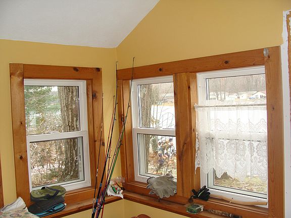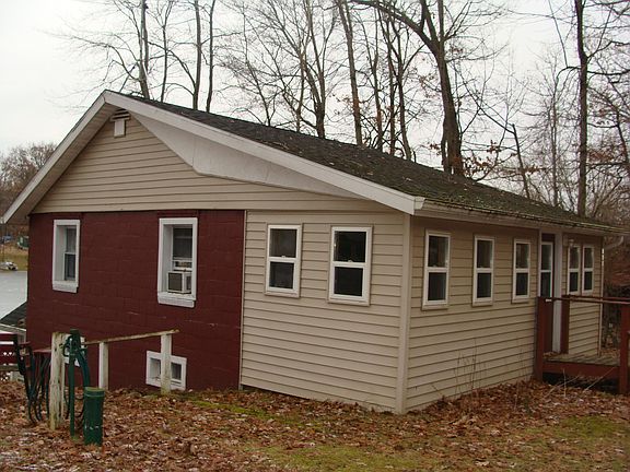 Year around lakefront home with natural gas. Knotty pine walls. Main level has a enclosed porch for summer sleeping, family room, 1 bedroom, full bath with laundry. Lower walkout level has kitchen, eating area, living area & utility room. Seller's family bring their motor home and camp out. Outside water hook up.