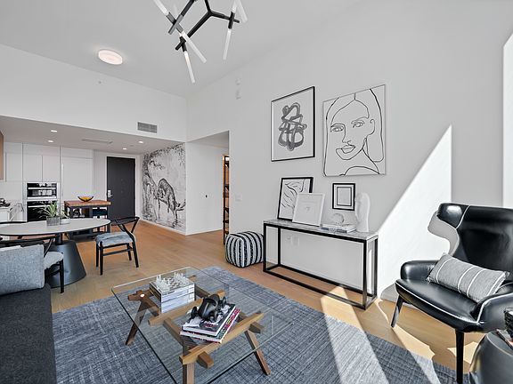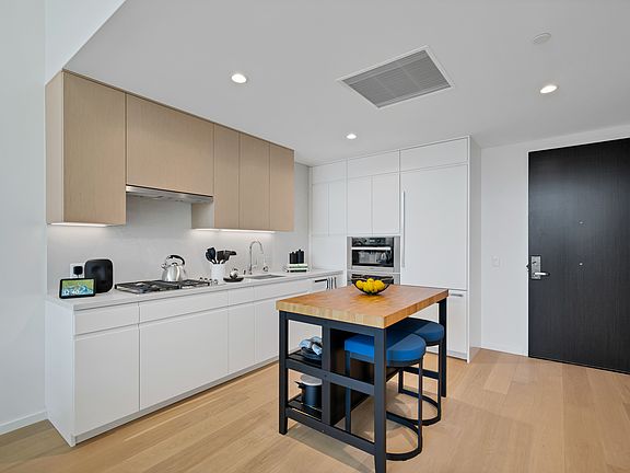 This one-bedroom, one-bath home features an open-concept great room with soaring ceilings and an effortless flow between living, dining, and cooking spaces. The chef-caliber kitchen features a seamless modern design, Caesarstone countertops, custom wood cabinetry, and Miele appliances. The master bedroom features east-facing sunrise views and multiple closet spaces. Additional contemporary details include six-inch-wide oak flooring, Nest Learning Thermostats, and built-in window shades.