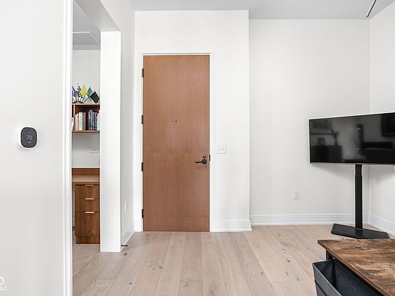 Experience luxurious, modern living in this beautifully designed 1 bed, 1bath condo located in highly sought-after Chatham Park. This stunning home features wide-plank oak flooring, custom walnut cabinetry, quartz countertops, and elegant marbled tile throughout. Enjoy the convenience of a built-in home office or soak up the sun while working from the oversized private patio. A flexible entryway space offers endless possibilities- perfect for a Murphy bed, bar area, or additional seating. Better than new, this condo comes equipped with a washer and dryer, plus custom motorized blinds for added comfort and style. A dedicated parking space and private storage unit are also included. Take advantage of top-notch community amenities including a library, fitness center, meeting room with kitchen, outdoor fireplaces, and grilling stations. All just steps from the vibrant restaurants and shops along Mass Ave and the dynamic Bottleworks District.