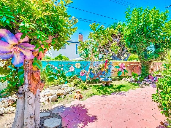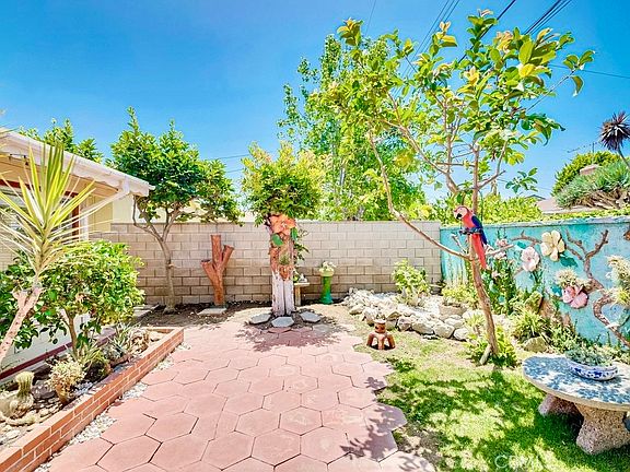 Welcome to this charming 3-bedroom home in the serene College Park Estates! The front yard features a mature tree and a well-maintained landscape with side yards perfect for outdoor activities or gardening. The spacious living room with a fireplace opens to a generous sunroom (square footage not counted) and it opens to the inviting backyard. The large backyard includes a beautiful landscape with a custom-built wall, fruit trees, and an above-ground Jacuzzi. The side yard has a sizeable storage unit. This home also features a fully paid solar system, central A/C, central heating, and recessed lighting in the living room and kitchen. This home offers a rare chance to enjoy the highly sought-after coastal lifestyle, with top-rated schools, local shopping centers, and easy freeway access. Experience the perfect blend of timeless charm and modern comfort.