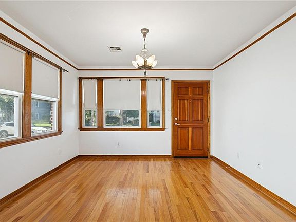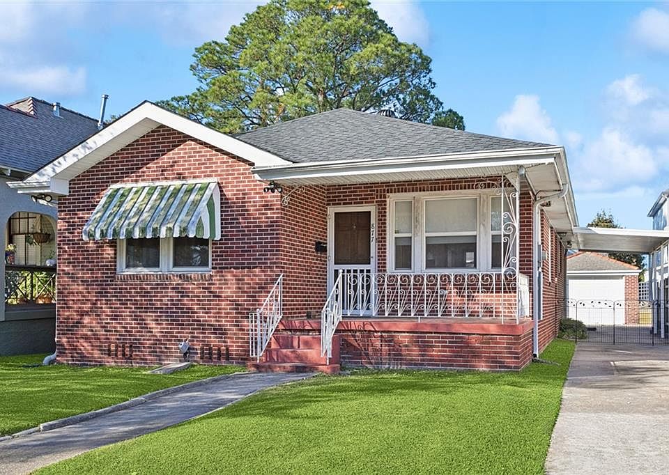 In the heart of New Orleans, this home features a classic front porch accented with decorative wrought-iron railings and inside a bright, open layout with timeless architectural details. The spacious living and dining areas are connected by a graceful archway, creating a natural flow through the space. Gleaming hardwood floors and rich wood trim add warmth and character, while large windows fill the rooms with natural light. Classic light fixtures and clean white walls offer a perfect balance of vintage charm and modern simplicity. The solid wood front door provides a welcoming entry, setting the tone for a home that’s both elegant and inviting. This home features three bedrooms and one full bath and a large kitchen with a built-in microwave, range/oven pantry and refrigerator. There is a covered carpet with a side door entrance plus a garage in the backyard.