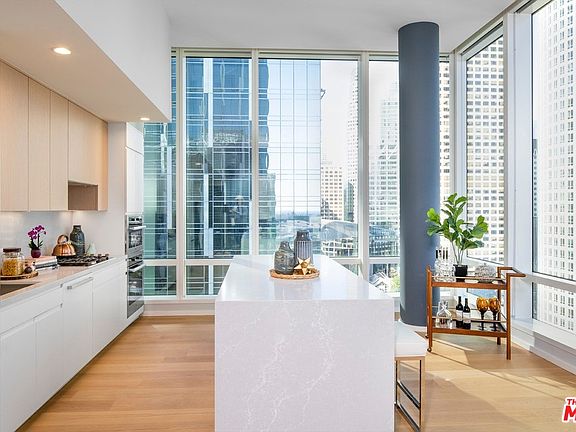 This two-bedroom residence is a corner home capturing multi-directional, southwest and northwest-facing views of Los Angeles and the Hollywood Hills.A place to play up your culinary skills, host, or even savor take-out from the acclaimed restaurants that surround, the kitchen is outfitted with sleek Caesarstone countertops, Studio Becker Cabinetry with under cabinet LED lighting, integrated Miele appliances, and wine coolers in select units.The bathroom includes a custom-designed vanity, Hansgrohe & Duravit Bath Fixtures, and a large soaking tub with stone surround, to create a luxurious setting for relaxing at the end of the day with a little bubbly.Expansive windows with custom shades. Central air conditioning and heating controlled by Nest Learning Thermostats. 7.5" oak plank flooring. Metropolis has designed its gracious bedrooms and master suites to offer the ultimate in contemporary comfort and warmth, this is exactly where you want to wake up and wind down.