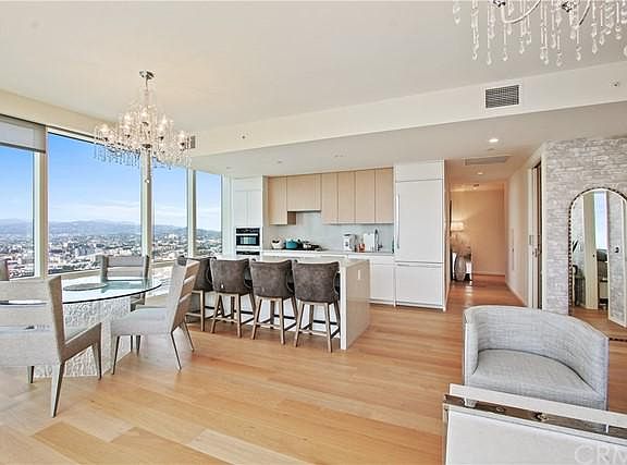 MUST SEE NEW 2 bed/2bath corner unit on the 41st floor of Tower II at Metropolis! The house is fully furnished. 2 blocks from L.A. Live and STAPLES Center in DTLA. This beautiful unit is surrounded by towering window walls capturing far-reaching, multi-directional views of the city skyline and surrounding hillsides. Two bedrooms include a gracious master suite with walk-in closet and spa-like bath. Contemporary details include Caesar stone countertops, custom wood cabinetry and Miele & Bosch appliances in the gourmet kitchen, as well as Nest Learning Thermostats, and 6" wide oak flooring as well as high ceilings throughout! Residents of Metropolis have access to an abundance of resort-style amenities, including 24/7 lobby attendant, concierge service, residence clubhouse, resort-style pool, sky garden, fitness and yoga studio, billiard, game and screening rooms, children's playground, putting green and dog park. Luxury high-rise living at its finest!!!