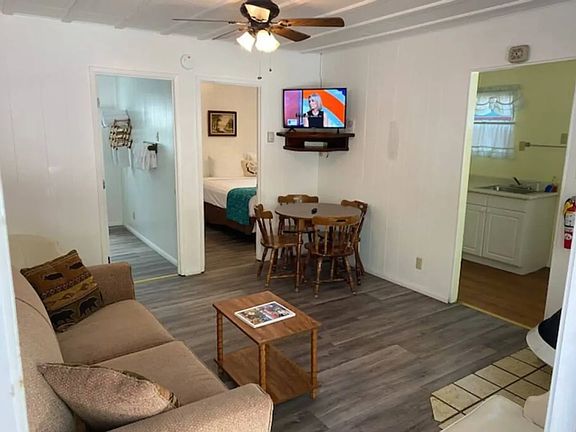 Cabin to Now offered for monthly stay! This charming Big Bear cottage has a lot to offer. The bedroom has a King bed and living room has a queen sofa. Perfect Cabin for up to 2 people. All utilities, Wi-Fi & 1 car parking space included in a cozy and comfortable mountain getaway. Perfect for families and groups seeking relaxation and adventure. It features a well-equipped kitchen, comfortable living space, and large bedroom, all complemented by a porch for outdoor enjoyment. Enjoy close proximity to ski resorts, the lake, and the Village, making it an ideal base for exploring all that Big Bear has to offer