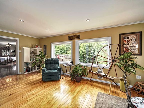 An immaculately maintained bungalow, with large sunroom as you enter, awaits you. Sit on the large deck with your morning coffee and listen to the sounds of nature from the stream/pond in your back yard. Landscaped, with beautiful flowers, there is plenty of gardening space for your green thumb or an excellent area for your puppy pal. It's a perfect location. Inside there are immaculate hardwood floors throughout most of the home. The large, functional, and well-thought-out kitchen makes entertainment easy. The walkout basement is finished and offers R-50 insulation in the ceilings and R-12 in the walls. Included with the house are: an air tight wood stove (3 years old), new hot water boiler (3 years old), electrical panel (2015), generator (2015), and shed (8x12). This property won't last.