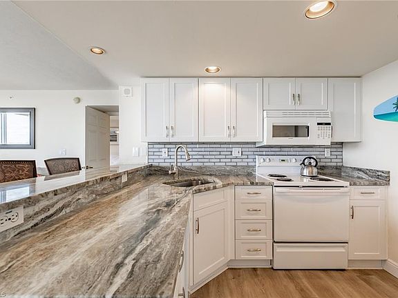 Lovers Key Resort welcomes you to this beautifully UPDATED 1bed/1bath 3rd floor condo, offered fully furnished and ready to enjoy resort living! NEW luxury vinyl flooring and new baseboards, granite countertops throughout and glass tile backsplash. Soak up sunrise VIEWS overlooking the Estero Bay. Private storage for beach gear and fishing poles. Lovers Key Resort offers everything you could want- onsite restaurant, resort pool and spa, 24hr reception, fitness center, and onsite laundry. Walk to Lovers Key State Park, or hop on the trolley to take you from Bonita Beach to Fort Myers Beach...nestled away from the crowds but easily accessible to all the fun! Currently in a successful vacation program, this unit is investor friendly with only 1 night min rental. Wonderful opportunity to own a turnkey beach getaway!