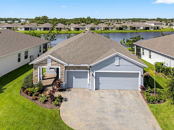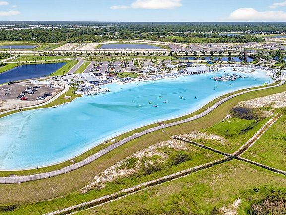 Live the resort lifestyle in this stunning three-bedroom, two-bathroom home perfectly positioned on a peaceful lake in the brand-new Brightwater Lagoon Community. This home also features a rare 3 car garage with beautiful epoxy floors and recently added upper storage racks to create extra space. This modern, all tile residence is loaded with so many upgrades including premium appliances, added shelving in the foyer and pantry, remote operated fans, upgraded fixtures, Levelor light filtering roller shades on all windows, and stylish finishes throughout the entire home. The bright, open-concept layout features a gourmet kitchen with sleek cabinetry and an eye-popping backsplash, a large center island, and plenty of space for entertaining. The spacious primary suite offers serene water views, a walk-in closet with new shelving, and a luxurious ensuite bath. Both bathrooms also include premium comfort height toilets. A beautifully landscaped yard with top-of-the-line high flow tip irrigation, gutters, smart home technology and a blink camera system, and also the low HOA fees make this home truly exceptional. Residents enjoy access to Brightwater’s crystal-clear 5–6-acre lagoon, sandy beaches, swim up bar, paddle boarding, water slides, kayaking and all the amazing resort-style amenities. This community also features a dog park, a child's play area and miles of trails and green spaces for an active lifestyle. This property is move-in ready and waiting for you to enjoy the ultimate Florida lifestyle.