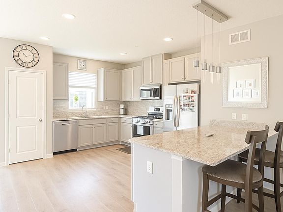 This well-maintained town house features one of the most popular floor plans. This house has Open Concept Kitchen with Large Island with Granite Counters, gray kitchen and bathroom cabinets, stainless steel appliances, wood floors throughout the entire main level. Located on one of the best lots in the development. Great main floor office, upstairs features three bedrooms, 2 bathrooms and Laundry. Upgraded washer and dryer. The lower level has a great family room or can be used as a bedroom or a home gym, complete with 4th bathroom. The perfect option within the perfect community.