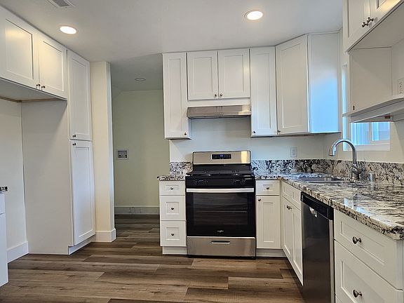 Private backyardPrivate backyard patioTwo-story homeCustom laminate floorsGranite countersNew kitchenRange hood