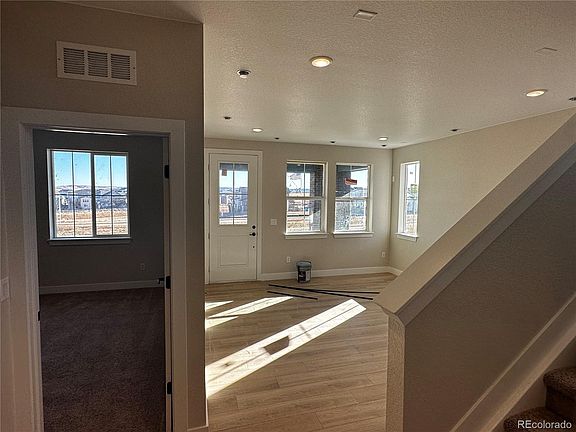 Watch the sun set from your balconies!  This stunning three story features THREE patio, balcony spaces!  The Hartnett is a spacious floorplan and boasts luxury and convenience.  Convenient main level bedroom with private bath.  This home is built for entertaining on the third level with wide open spaces and views of the front range: perfect for family and guests! Gorgeous kitchen opens to the oversized gathering room, nook, balcony spaces.  Private Pulte planning center.  Custom design finish details are sophisticated with upgraded gas stainless steel chef’s appliance package, single basin sink, linen cabinets, frost quartz counters, and luxury vinyl plank floors. Don't miss your opportunity to be a part of this active Sterling Ranch Master Planned Community! Surrounded by two state parks, three regional parks with easy access to downtown Denver, shopping, restaurants, freeways, trails, rec center and easy access to DIA airport.  Schedule a personalized home tour today!