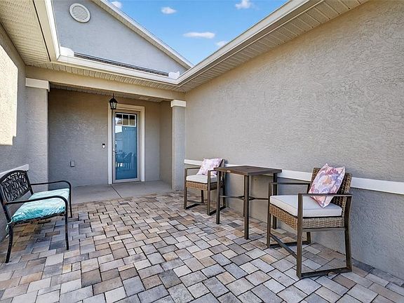 This home is WAY better than new, located near all amenities and activities and it is ready to go now! No expenses were spared in this gorgeous Willem floor plan with HUGE upgrades! Gourmet kitchen. Upgraded lighting. Upgraded flooring. Separate in-law suite and a third suite area. This home shows like a model home with building and after market upgrades like enlarged brick sidewalk to the front door, gutters around the entire home, new shutters on the front and back, landscaping with added palms and stone on all four sides of the home, brand new brick patio out back, Coolaroo shades in the lanai, New smart thermostat, custom made storm door on the front, setup for water softener, and 3 large storage racks on the ceiling in the garage. Extra large garage will fit 3 full cars. Three separate living quarters with 2 primary suites and a third bedroom/bath and flex room. 3 bedrooms, 3 baths and 2 flex rooms in total!. This home is perfect for those out of town guests or roommate/in-law situation. This home is super close to all amenities and activities and has everything you are looking for and everything you didn't know you wanted. All of this and located inside one of the greatest 55+ community On Top of the World. HOA includes High Speed Internet, roof repairs, exterior painting every seven years, irrigation water, exterior maintenance and insurance on the exterior of the home, lawn care, trash and recycling, 24/7 gated security, and access to all of On Top of the World’s resort-style amenities. Enjoy three pools (one indoor pool), two state-of-the-art fitness centers, pickleball, billiards, archery, cornhole, bocce ball, tennis, shuffleboard, horseshoes, remote-control flying and race car fields, 175+ clubs, a woodworking shop (small additional fee), art, sewing, library, and more! This golf-cart-friendly community offers convenient access to three shopping centers, is just 20 minutes from the World Equestrian Center, an easy drive to four cruise ports and major airports, and within close proximity to Orlando’s top entertainment and attractions. Don't delay in seeing this beautiful home!