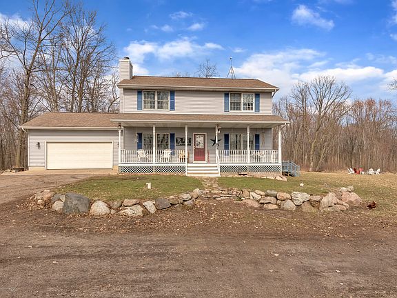 Welcome to this private two story home on 25 acres and a pond! The attention to detail throughout the this home wont go unseen. Built in 2001 it has 4 bedrooms 3 1/2 bathrooms with so much to offer. The large kitchen has brand new granite countertops, built in stainless steal sink fabulous for large gatherings. The main level has 9' ceilings making the already large space feel that much larger. The living room is a perfect place to cozy up next to the fireplace. The sellers had new carpet installed and had a professional painter refreshen the home with a new coat of paint. There is a 220 welders plug and a 220 plug near the bottom deck for a hot tub. This home is a true hunters paradice! Reserved: CAT toolboxes, portable tree stands, bird house north/east of the home, all TV wall mounts.