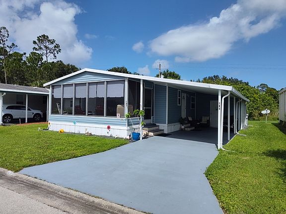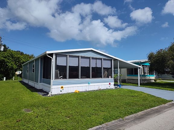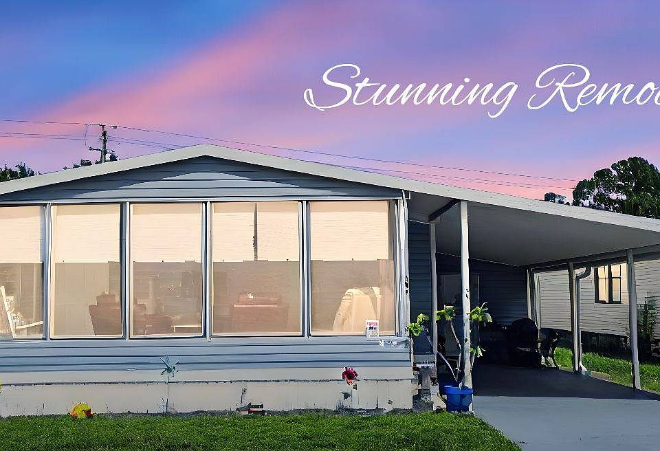 **MUST SEE**GORGEOUS REMODEL ON PERIMETER LOT**2 BED 2 BATH 960 SQ.FT* Located in Countryside at Vero Beach 55+ community. Lot rent is $1,029 per month and includes the use of the park's wonderful amenities, lawn, and trash services. THIS HOME HAS IT ALL!! All renovations have been completed between 2024 and 2025. Renovations include but are not limited to: NEW SIDING, ALL NEW HURRICANE IMPACT WINDOWS, DRYWALL THROUGHOUT, LAMINATE PLANK THROUGHOUT, TOTAL HOME REPLUMB WITH PEX, UPDATED KITCHEN AND BATHS, CROWN MOLDING AND BASEBOARDS, 2025 A/C AND WATER HEATER!! Open kitchen concept floor plan with bar top seating. Tons of storage. Large screened-in lanai with TV hookup. Long driveway with a spacious shed that houses the washer and dryer. All appliances are included with the sale. Call today to schedule a showing or make an offer! Countryside is a 55+ community that sits just minutes from I-95 and most shopping needs. Just 20 minutes to the closest beach. Must be park-approved with a background and credit check to purchase a home. All listing information is deemed reliable but not guaranteed and should be independently verified through personal inspection by appropriate professionals. Our company does not and cannot guarantee or warrant the accuracy of this information or the condition of this property. Measurements are approximate. The buyer assumes full responsibility for obtaining all current rates of lot rent, fees, and pass-on costs. Additionally, the buyer is responsible for obtaining all rules, regulations, pet policies, etc., associated with the community, park, or home from the community/park manager. Our company is not responsible for quoting said fees or policies.
