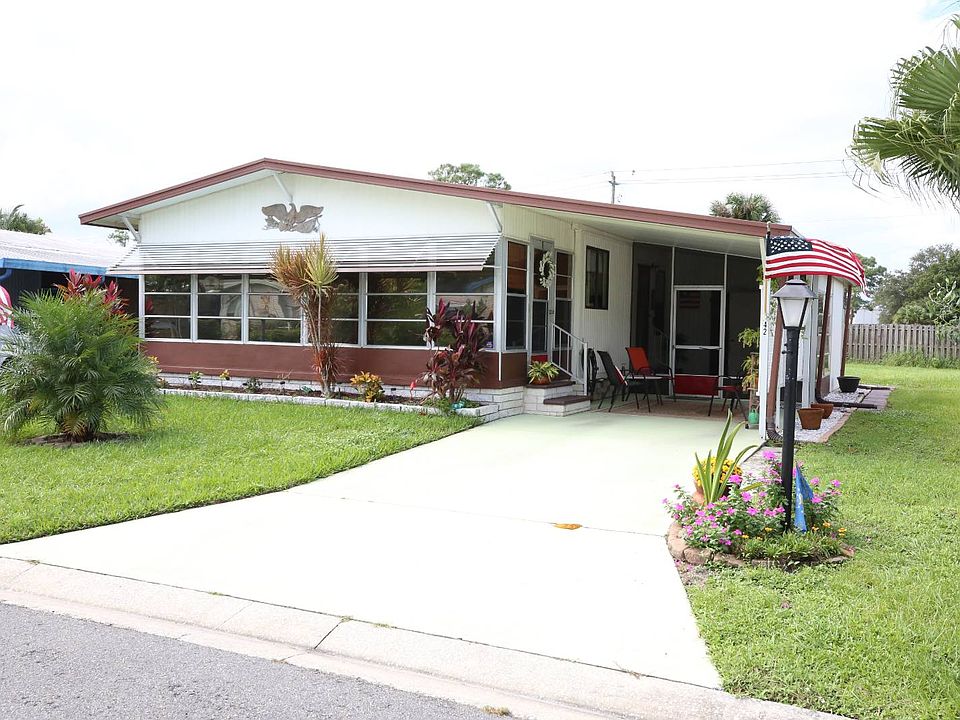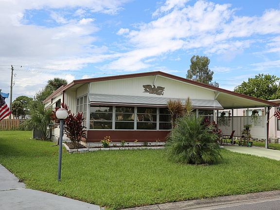 2BED 2BATH IN VERO BEACH PET FRIENDLY 55+COMMUNITY Here's a chance to own a two bed two bath home in Countryside at Vero Beach for a reasonable price of 30K . This home has a Desirable double roof (METAL), A 2021 Bryant Air conditioner Solid sub flooring throughout the home and a beautifully laid out Florida room that is off the living room sliding glass doors and is the full width of the house, It also has crank out windows To enjoy those cool winter breezes. Both bathrooms have 18 inch high rise toilets AND Vented exhaust fans. Guest bedroom will easily accommodate a queen size SET and also has dual closets One is a garment closet and the other is a walk in, Very nice feature for a guest bedroom... The master suite will accommodate a king size bedroom set and also has a Garment closet and a large walk in. Both bedrooms also have ceiling fans. As you can see by the photos this home has an extra large shed/ Workshop And is located on a large perimeter lot with plenty of privacy behind you. So if you're looking for a home in the $30,000 price range that has good solid bones Then this property could be yours. =================================================================== LOT RENT DETAILS: Lot rent covers weekly trash collection, lawn maintenance, garbage service, pool access, billiard room, spa, fitness center, fishing in the lake, card room, clubhouse use, shuffleboard, and horseshoes. Utility Information: Cable provided by Comcast, Direct TV available; Water supplied by Indian River Utilities; Electricity by Florida Power and Light. Application Requirements: $50 per applicant in US dollars, $75 for Canadian applicants; includes credit and background checks (no felonies allowed). Pet Policy: Two pets permitted, excluding aggressive breeds. If you're searching for a pet-friendly, 55+ active retirement mobile home community that combines extensive amenities with a welcoming atmosphere, Countryside at Vero Beach is ideal. Located just 10 miles from the U.S. Coast, it offers residents access to a large clubhouse, billiard facilities, a community fitness center, a swimming pool, RV storage, shuffleboard, tennis courts, and a whirlpool spa-hot tub for relaxation after an active day. On-site management and laundry facilities add to the convenience of living here. Waterfront lots are available, making it an exceptional choice. Plus, the Vero Beach metro area provides easy access to shopping and medical services within a 15-mile radius.