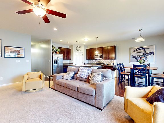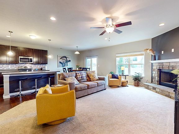 There's so much to love about this spacious 3 bed, 2.5 bath home with a bonus room in Avon! Explore this home via interactive 3D home tour, complete with floor plans, video & more. Open concept floor plan great room features a cozy, wood-burning fireplace. Kitchen includes center island, breakfast bar, & stainless steel appliances. Enjoy high ceilings and large windows throughout the main level. Primary bedroom includes a private full bathroom with double sinks, whirlpool tub, & walk-in closet. Upper level bonus room with half bathroom could be used as a private, 4th bedroom. Additional storage space in the attached 2-car garage with 4 foot bumpout. Covered patio offers a lovely location to relax outside. Great location offers convenient access to nearby parks, schools, and the Bicentennial Trail only a few feet away!