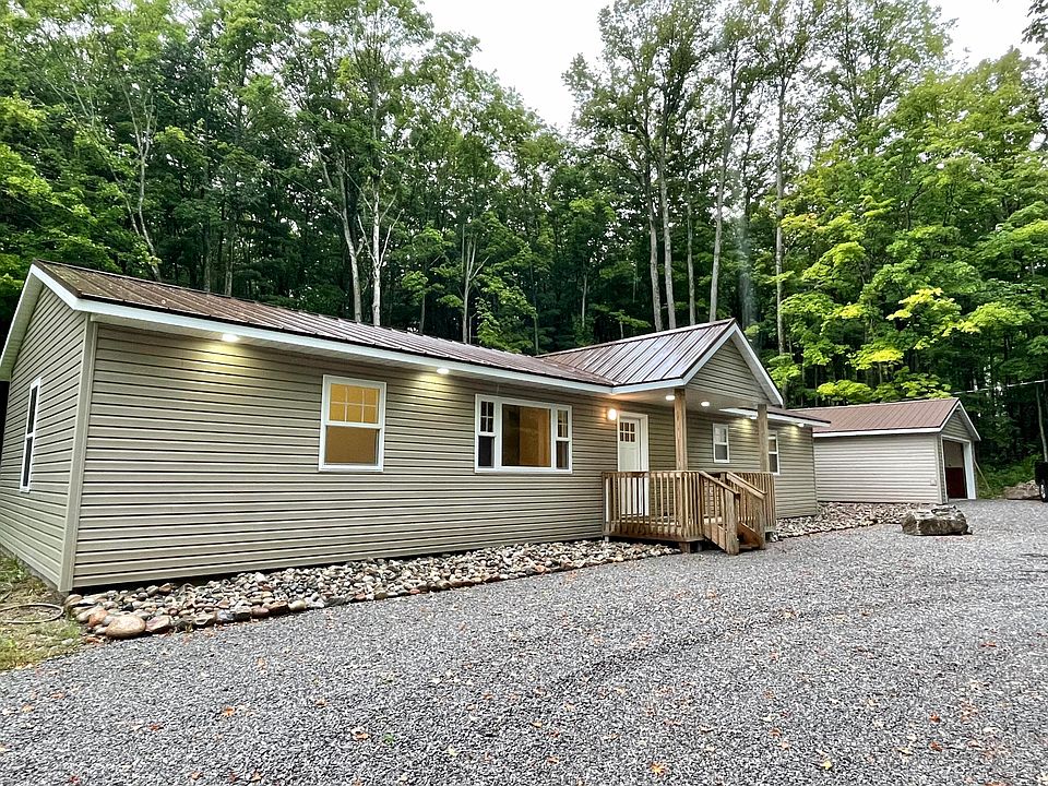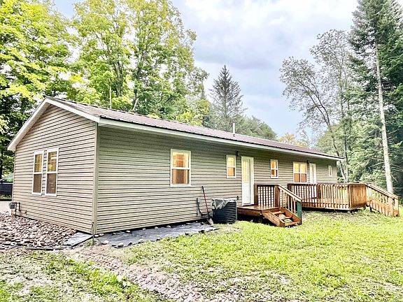 FOR SALE - BRAND NEW, be the first to live in this 3 Bed 2 Full Bath with garage on 2.9 wooded, private acres in Vienna Township, MI, near Lewiston, Atlanta and Johannesburg. Spacious 1408 sq ft was recently completed and built with high quality materials and excellent craftsmanship. 2x6 construction with extra insulation in walls & ceiling. It features a great layout - the living/dining/kitchen is central for gatherings. and the master suite with private bath is separate from the guest bedrooms, which are all newly carpeted. Huge deck for entertaining, natural gas heat plus central air