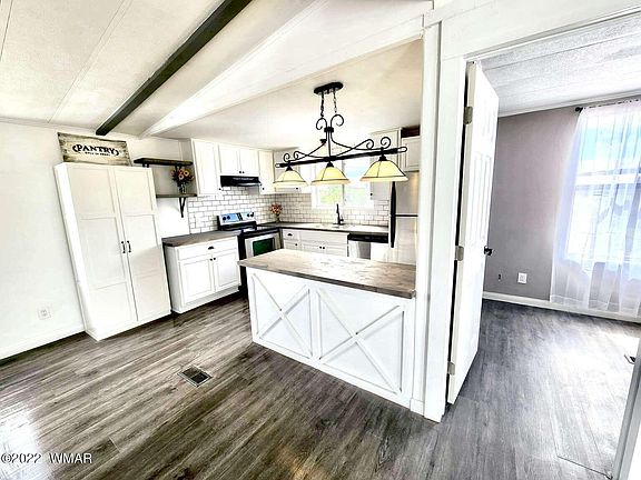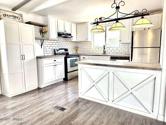 THIS IS IT!! This peaceful 1 ACRE White Mountain Property has it all! Located in the suburbs of Show Low, with Easy Access off the paved Bourdon Ranch Rd! Enjoy the peace and beauty of country living with the convenience of public utilities (water and electricity). The bright, open floor plan allows for amazing holiday get-togethers! The BEAUTIFUL finishing touches and wood accents add so much charm and character to this 1152 sqft double wide. Fresh paint, new luxury vinyl flooring and updated lighting and fixtures all come together to give you both style and comfort. The bright, airy kitchen has new butcher block countertops, ceramic subway tile, pantry and all appliances as shown. No HOA!! Enjoy your freedom with a host of Lakes and Hiking—practically at your doorstep!! WELCOME HOME!!!!!