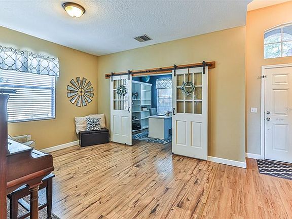 You wont regret adding this home to your must-see list! This gem sits on a cul-de-sac lot in gated Spring Ridge with no rear neighbors. Impeccably maintained, it features flexible living space in the front of the home, including a room that could be an office, craft room, or 5th bedroom the possibilities are endless. Newer luxury vinyl flooring in the living areas is both beautiful and easy to care for. The kitchen boasts wood cabinets, a center isle, laminate counters, and a walk-in pantry. It overlooks the living/dining room combo with a newer electric fireplace. The spacious, private master suite has a tray ceiling and walk-in closet, while the master bath offers dual sinks and a large walk-in shower with subway tile. Both bathrooms have been recently updated; theres also a surround-sound system and indoor/outdoor security cameras with sound. Outside, the pergola-style covered patio with brick pavers overlooks a back yard with plenty of room for little ones to play. Spring Ridge is a newer community with lots of amenities, including a community center with a pool, fitness room, playground, and basketball court. Its less than 3 miles away from local schools, shopping plazas, a movie theater, and tons of dining options. In less than 4 miles, you can hop on the Suncoast Pkwy for easy access to Tampa and the airport. This home absolutely will not last, so be sure to see it today!