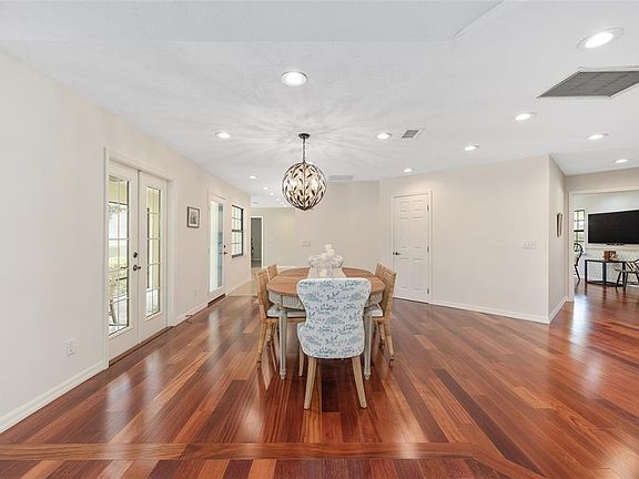 Tucked into the heart of NW Ocala’s horse country, this beautifully kept farm sits on just under 14 acres in the quiet Field of Dreams neighborhood. Just minutes from WEC, HITS, and everyday amenities, it’s the kind of property that feels private yet close to everything. A tree-lined drive leads you through rolling, manicured pastures toward the barn, arena, and home. The residence is surrounded by mature landscaping, with a welcoming front patio and a classic paver walkway that sets the tone right from the start. Inside, the home is light, bright, and recently updated, offering 3 bedrooms, 2.5 baths, plus a den/office. Upgrades include cherry and cork wood floors, fresh finishes throughout, and plenty of natural light. The great room was designed for comfort and entertaining, with cathedral ceilings, large windows, and a floor-to-ceiling wood-burning fireplace. The kitchen has been completely redone with custom cabinetry, premium appliances (GE Profile range with air fryer, Fisher & Paykel fridge and dishwasher, and Viking microwave), a center island with breakfast bar, and a charming breakfast nook with bay window views overlooking the pool. The split-bedroom layout gives guests privacy, with two spacious guest rooms sharing a Jack-and-Jill bath with dual vanities. The main suite stands out with its own screened lanai, two walk-in closets, and a brand-new en-suite featuring granite counters and a walk-in shower. French doors from the kitchen open to a screened patio and the resort-style pool area beyond surrounded by lush gardens, paver walkways, and built-in seating for relaxing or entertaining. A detached guest area sits just off the pool, offering two private bedrooms, each with its own bath, and a small exterior kitchenette — perfect for visiting friends or family. For the horses, the farm is well thought out and functional. There are five 3-board fenced paddocks, each with water, plus a concrete block center-aisle barn with five matted stalls, 20' ceilings for airflow, fly-spray system, wash rack, and tack room. The new 70’ x 180’ irrigated arena with Fleet Footing is ready for year-round training. A 1,000-gallon buried propane tank and whole-house generator were recently installed, adding peace of mind during storm season. If you’ve been looking for a move-in ready horse property in one of Ocala’s most desirable areas, close to everything yet peaceful and private, this one checks every box.