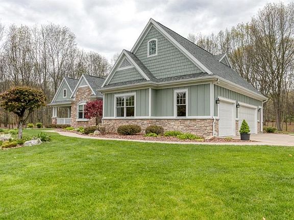 This Stunning Dream Home is the one you have been waiting for! With custom built touches and upgrades throughout, quality can be seen in every detail. Drive up to 10 serene acres of nature, wildlife, and walking paths on your own land. Your dream workshop awaits in the 1, 620 sq ft heated outbuilding, with concrete floors, a 9x9 overhead door, and upper level storage. As you walk through the front door, you will notice the bright, open concept, overlooking the gorgeous wooded backyard. The step-down living room features a 12 foot oak coffered ceiling and a gas fireplace with wood option. The functional layout continues to the kitchen, with heated floors, a large island and pantry, with plenty of room for entertaining including a slider into the 3-season porch.You will love the master suite with 12-foot vaulted ceilings and heated tile bathroom floors. The main level also features a second bedroom office, a second full bath, and laundry room with plenty of table-top space. The upgrades Lot Dimensions: 332x1322