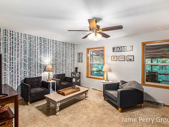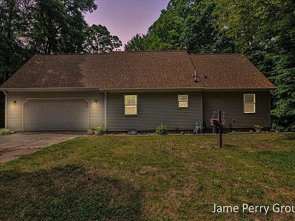 Privacy, spaciousness, and convenient are 3 buzz words for this property. Short drives to Greenville, Stanton, Lakeview and a bit further to Grand Rapids make this private setting 5 bedroom 2 bath home nestled in the woods close to everything. Sitting on just shy of 5 wooded acres and trees on all sides give the look and feel of being on a larger parcel. Main floor boasts kitchen with center island open to dining and living room. Front of home has a large screened front porch for enjoying nature and sipping your morning coffee. Two bedrooms and a full bath compliment main level. Upstairs an additional 2 bedrooms with full bath, plus a large bonus room for storage or crafting?? Lower walkout level has bar area, second family area and 5th bedroom. Lots of room. Come see!!!