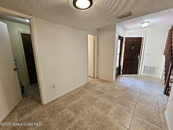 Tucked inside a lush, gated coastal community, this enchanting two-story retreat offers the perfect blend of comfort and tropical serenity. The main level flows from a bright living area to a fenced backyard; a spiral staircase climbs to the primary suite's balcony, prime perch for rocket launches. Upstairs: two bedrooms, two full baths, a walk-in closet in the primary, and laundry right where you need it. A newer roof adds peace of mind. One car garage and additional parking outside. Community perks such as two pools, sauna, clubhouse, shuffleboard, tennis, racquetball, walking trail, and beach access—plus a second rear gate. Pet friendly, minutes to the port, 528, and the ocean; Orlando is an easy commute. Also offered for rent MLS 1060093