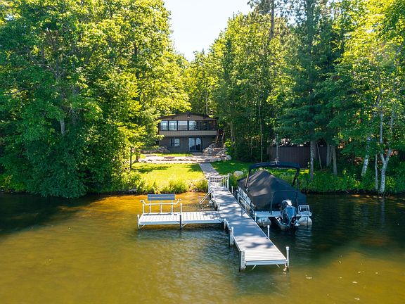 Absolutely stunning views, gorgeous sunsets, and a quiet 600+ acre full recreational lake await you at your beautiful Buckskin Lake getaway. A magnificent, professionally landscaped walkway straight out of your walkout basement will take you on a level path right to your personal 105' sandy shoreline. The practically brand new pier is the perfect spot to park your boat(s), sit and enjoy the view, or dip your feet into the clear water. With power at the beach, and a new 10'x15' shed for toys, you are set for hours of water activity fun! The 3BR/2BA home features a nice touch of the Northwoods feel with knotty pine ceilings and walls, and a generously sized 10'x25' enclosed 3-season porch that is sure to be the place to hang out at the beginning or end of each day. The seller has made numerous updates to the home, making it move-in ready, and mechanically/structurally/electronically worry-free. Schedule your private showing today!