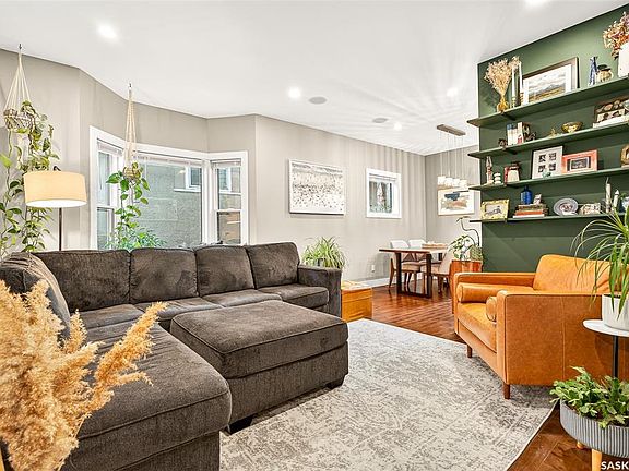 STUNNING home close to parks, schools, and amenities! This beautifully updated home is move-in-ready and has some fantastic features! You are welcomed into the heated front porch, giving you lots of space for coats and shoes. This main floor is so inviting with beautiful hardwood floors and large windows letting in plenty of natural light. (All main floor windows have recently been replaced with triple pane windows and main floor recently painted!) You have a spacious living room with a beautiful green accent wall with built-in-shelving, opening up to your dining area. You will love this kitchen! Marble-style countertops, white cabinetry, tile backsplash, stainless steel appliances all make up this showstopper. The main floor is complete with a recently updated, moody 2-pc bathroom, and back entryway complete with built-in-bench. Upstairs you will find 3 beautiful bedrooms! The stunning color-drenched primary (currently hosting a king-sized bed), features a custom built-in-closet complete with large doors, pull-out shelving, and lighting, offering you so much storage space. Pull open the bookcase to reveal your beautiful spare room complete with built-in seating and storage. The 4-pc bathroom is breathtaking, complete with tiled bathtub, and emerald backsplash. The basement offers plenty of space for storage or hobbies, the choice is yours! Outside you have a private, fully-fenced backyard complete with new composite deck and access to your 16' x 22' garage! AC installed 2022! Reverse osmosis system newly installed! This property truly is a great place to call home! Book your showing today!