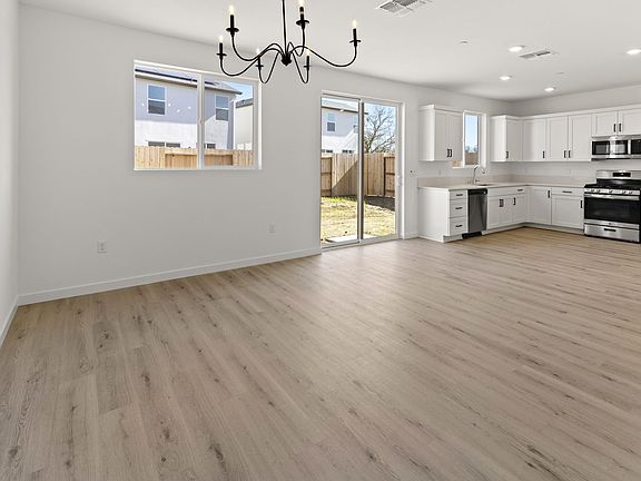 Step into this beautiful two-story residence and find yourself greeted by a welcoming entryway that leads you down a hallway accented with windows toward the heart of the home. The main living area is a spacious open-concept design seamlessly connecting the great room, kitchen, and dining area, creating a relaxed and functional space for everyday living and entertaining. The great room offers tons of opportunity for personal design touches and cozy seating arrangements to fit your lifestyle. The adjacent kitchen is equipped with all the essentials for home cooking, including modern appliances and a pantry for storage. The dining space provides a casual setting for enjoying meals together, with a sliding glass door leading to a charming patio where you can enjoy a morning coffee or dine alfresco on warm days. Upstairs, you'll find the private quarters of the home. The primary suite and additional bedrooms, each offering ample space and natural light. The primary suite is a peaceful retreat, boasting a comfortable layout, a walk-in closet for storage, and a private bathroom for added convenience. With its relaxed vibe, practical layout, and comfortable amenities, this two-story home is the perfect place to kick back, unwind, and enjoy the simple pleasures of everyday life. Welcome home to comfort and convenience.