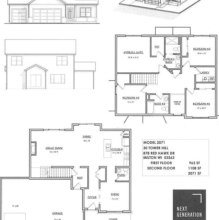 Estimated Completion Date February, 2026...Quality New Build by Next Generation Construction in Milton's popular Tower Hill subdivision! Beautiful 4-bedroom, 3-bath 2-story Contemporary home w/ 3-car attached garage! Open concept w/ Large Great room & Gas Fireplace! Spacious Eat-in kitchen w/ Separate dining area, Center Island, Quartz counters, Corner Pantry, Stainless appliances & Soft-close cabinetry! Main level Dining rooms, Mudroom & Powder room! Primary suite w/ Private bath, Walk-in closet, Double vanity & Walk-in shower! Upper-level laundry conveniently located near all 4-bedrooms! Lower level is Studded, Insulated & Roughed-in for future bath plus Egress for possible 5th bedroom! Great location & Curb appeal!!! Yard will be left with fine grade & seed...Lot #30 Tower Hill