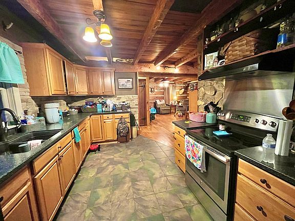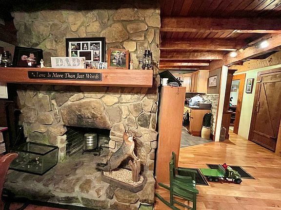 - Fireplace features: Flue, Stone, Wood Burning, Wood Burning Stove, Two