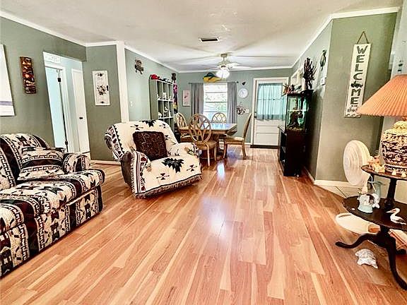 Welcome to the Woodlands community in Rainbow Springs, one of Dunnellon’s most sought-after neighborhoods. This 2-bedroom, 2-bath home is perfect for first-time homebuyers or those looking to downsize without sacrificing comfort. Step inside and you’ll find a spacious kitchen area, perfect for cooking, entertaining, or gathering with family and friends. The open layout creates a warm and welcoming flow throughout the home, while large windows allow natural light to fill the living spaces. No need to downsize your outdoor lifestyle, situated on 1.04 acres, this property offers plenty of room to add a pool, build a fire pit area, or park your RV. Enjoy the tranquility and privacy of your own piece of paradise while still being close to shopping, dining, and the crystal-clear waters of Rainbow River. Residents enjoy some pretty sweet perks for a very low yearly HOA fee. They include community swimming pool, clubhouse, bocce ball, pickle ball, tennis, basketball, driving range, restaurant, disc golf, walking trail and access to your own private 3-acre residents park which is just a 1500-foot peaceful kayak or canoe paddle from the first magnitude Rainbow River State Park head spring. This exclusive community river park has 2 large pavilions, barbecue grills, segregated bathrooms, outdoor showers, private swimming area, kayak launch and supervised security for safety and peace of mind. Dunnellon’s Rainbow Springs is a rare gem. You will also be able to experience world class golf at Juliette Falls Country Club. This ideal location places you at the doorstep of small town living at its finest in addition to being close to Ocala, Gainesville and vacation attractions found in nearby Tampa and Orlando. Don't miss your opportunity to visit this lovely home and property.