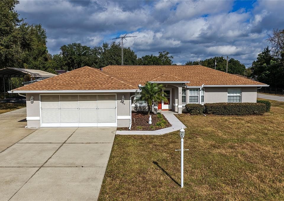 Beautifully Updated & Fully Furnished 3-Bedroom, 2-Bath Home on 0.43 Acres + Additional Parcel in a Highly Sought-After Neighborhood! Welcome to this exceptionally maintained turnkey property offering comfort, style, and space both inside and out. This stunning home features 3 spacious bedrooms, 2 full bathrooms, and comes fully furnished—including décor, lamps, and essentials—ready for immediate move-in or use as a seasonal retreat or investment. Step inside to a bright, inviting interior with NO CARPET, making the home low-maintenance and perfect for pets or allergy-friendly living. The cozy fireplace creates a warm focal point in the living area, ideal for relaxing evenings or entertaining guests. The kitchen is complete with new appliances, abundant cabinet space, and a convenient layout designed for easy everyday living. Both bathrooms are well-appointed, offering modern functionality and plenty of storage. Outside, the property shines with practical features corner lot plus an additional parcel for extra room, privacy, or future expansion. This home also has a RV carport—ideal for RV owners, travelers, or extra covered parking. Storage shed for tools, equipment, or hobby space. Located in a highly sought-after neighborhood known for its peaceful setting and convenience to The Villages, Shopping & Dining.