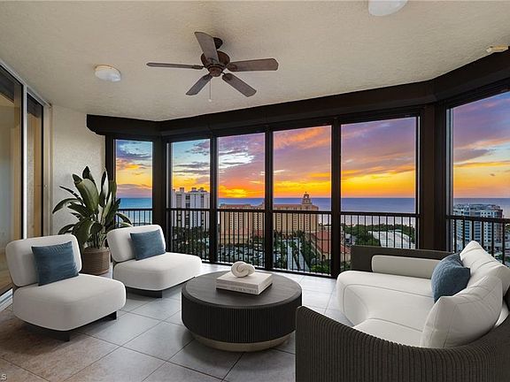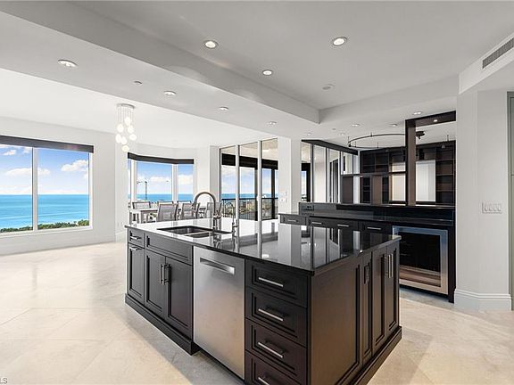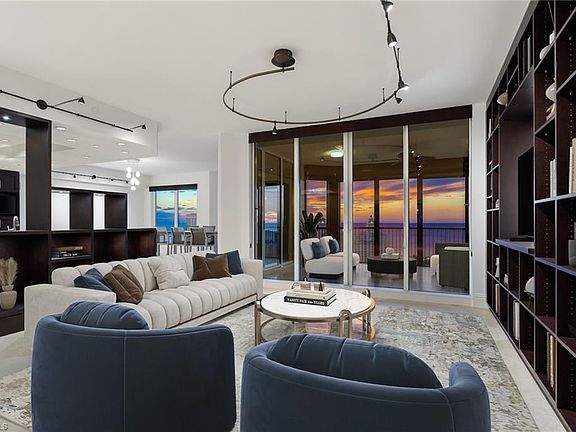 Perched atop the prestigious Trieste at Bay Colony, this extraordinary penthouse-level residence offers an unparalleled combination of comfort, space, and panoramic views. Encompassing over 6,800 square feet of living area, the home features four screened balconies, seven versatile bedroom spaces, a studio, and a library—providing endless opportunities to reimagine the layout or create a multigenerational family retreat. Step from your private elevator into a radiant great room where natural light and Gulf breezes set a tranquil tone. Open the sliders to enjoy the refreshing cross-breeze and seamless indoor-outdoor living. The expansive open kitchen overlooks the Gulf, creating the perfect setting for gathering with family and friends. Trieste offers world-class amenities including a resort-style pool, elegantly updated lobby areas, a state-of-the-art fitness center and a private movie theatre. As part of the exclusive Bay Colony & Pelican Bay community, residents also enjoy access to a private beach club, premier tennis facilities, brand new pickle ball facility and more. Completing this exceptional offering are four parking spaces and two storage units, ensuring the utmost convenience for your dream Naples lifestyle.