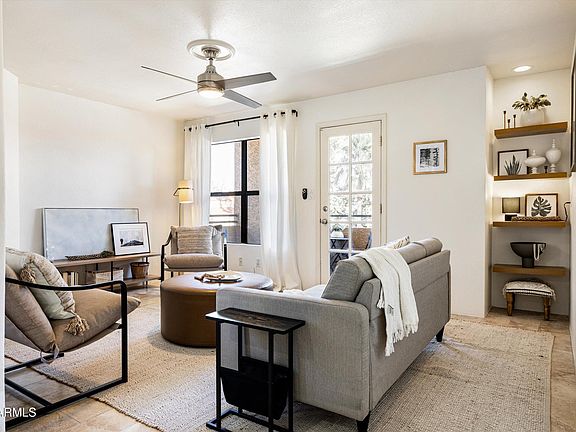Experience elevated Scottsdale living in this beautifully renovated 1 bed/1 bath condo, thoughtfully upgraded with quality finishes throughout. A rare find with covered parking at your doorstep, this residence features two covered patios with tranquil mountain views, custom stone flooring, and fresh designer paint. The kitchen shines with new soft-close cabinetry with pantry, quartz counters, tile backsplash, upgraded fixtures, and newer appliances. The spa-inspired bath offers a quartz vanity and new tub/shower with elegant tile surround. Enjoy resort-style amenities—3 pools (1 heated), spas, fitness center, pickleball/tennis, BBQ areas—plus nearby walking trails and a prime central Scottsdale location with effortless 101 access.