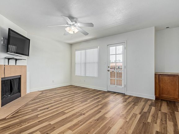 Wood-burning fireplacePrivate patioWalk-in closetSpacious master bedroomWood-like vinyl flooringOpen living space