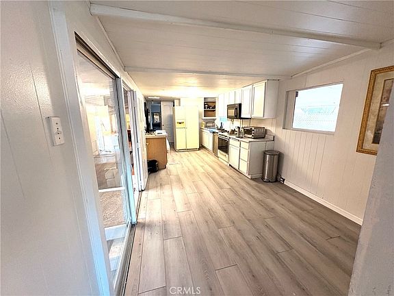Welcome to this maintained nestled in a quiet, all-age community. This cozy home offers generous side yards with a lot of trees & fruit trees on both sides, perfect for enjoy gardening, outdoor seating, Enjoy a bright and open living area to the 530 foot patio and the yards, open concept kitchen with plenty of cabinet, island space , and a private primary room with a closet, cabana space with electric, water, gas connected, covered parking, storage spaces, Low space rent.Spanish assistant available.