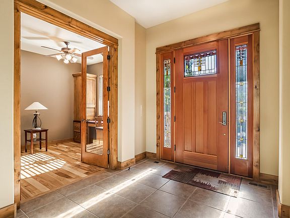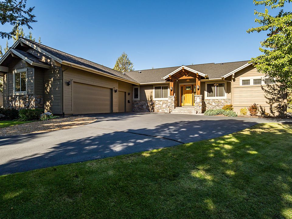 Set on over a half acre in the desirable Eagle Crest Resort community, this immaculate Craftsman-style home combines luxury, comfort, and a park-like setting. Overlooking the 2nd fairway of the Ridge Course, it features hardwood floors, vaulted ceilings, and large windows framing stunning golf course views. The chef's kitchen offers double islands, gas cooktop, wall oven, breakfast bar, and pantry—perfect for entertaining. The great room highlights wood beams, stone fireplace, and custom built-ins. The primary suite includes patio access and a spa-like bath with soaking tub, walk-in shower, and dual vanities. Two guest bedrooms share a connecting bath, plus an office and spacious laundry room. Beautifully landscaped grounds, abundant natural light, and an oversized triple garage complete this peaceful resort retreat.