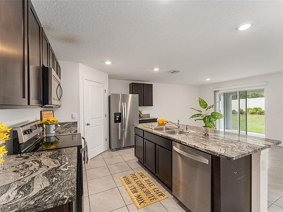 Welcome to Greystone Hills! This beautifully maintained 4-bedroom, 2-bathroom home offers a spacious open floor plan with tile flooring throughout the main living areas and 8-foot ceilings that create a bright, airy feel. The heart of the home is the kitchen, featuring stainless steel appliances, a large island centerpiece, and plenty of room for entertaining. Built with durable concrete block and stucco construction, this home is designed for low maintenance living. The versatile fourth bedroom is located near the front of the home and is separate from the other bedrooms making it perfect for a guest suite or private office. Enjoy life in the gated Greystone Hills community, complete with a resort-style pool, clubhouse, and cabana. Ideally located just minutes from SR 200’s shopping, dining, and conveniences, this property combines comfort, style, and convenience. Don’t miss your chance—this home is priced to sell!