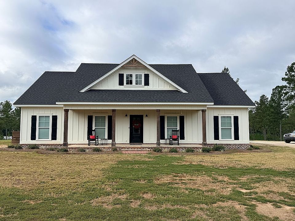 Custom built 3 bedroom, 2 bath home in a beautiful, quiet neighborhood. Built in 2022. The open-concept layout features a spacious kitchen, family room and dining area with granite countertops. Laminate floors throughout the home with quaint shiplap walls in the bathrooms, dining area, and stairway. Bathrooms are subway tile. Upstairs is a large bonus room with an office area and two huge storage rooms on either side. Home is sided with Hardie board and the slab foundation is wrapped with brick. 9 foot ceilings. 2 car carport and spacious front and back porches. 3.67 acre lot.