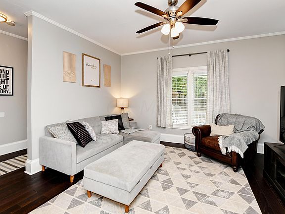 This 4 bedroom, 2 full bath home in Southern Orchards features 8ft + ceilings and a modern design with touches of original character. The kitchen is updated with leathered granite counters and tile backsplash. The open living space is great for entertaining and features beautiful ledger stone accents. The finished attic/4th bedroom provides a versatile bedroom/living area. Covered front and back porches create outdoor living spaces. The backyard is fenced-in leading to a 2 car detached garage with an additional off street parking space. Roof was replaced in 2023, new carpet on 2nd floor and fresh paint throughout! Furnace and AC were both replaced in the last 3 years and the porch roofs in 2019. Welcome home!