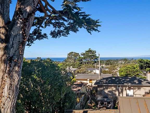 Spacious gem in heart of New Monterey...Bay views!...City light views!...Santa Cruz Mountain views!...Orange glow skies at sunset!...Lots of light throughout...Centrally located to Cannery Row, Pacific Grove, Pebble Beach...Reverse flr pln w/bamboo flrs...Vaulted ceilings...Huge atrium windows...Fantastic, modern updates throughout, especially in kitchen with high-end Miele appliances...huge island...soft-touch cabinets...beautiful tile-work...Newly remodeled primary bath with gorgeous walk-in shower and huge skylight...Expansive, panoramic views across bay fill 3d flr bed...Great primary suite w/awesome views through wall of windows...More vaulted ceilings...Composite lower/upper decks in back yard...with hot tub....appx 1900, 4/2.5=Fabulous ocean view retreat! Must see today!