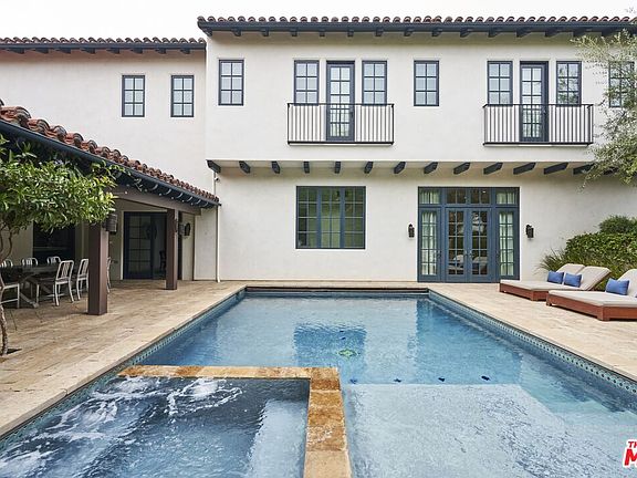 Exquisite 6 Bedroom 8.5 bathroom estate with unmatched design and amenities. Set on nearly one-third of an acre, this residence blends timeless elegance with modern luxury. Built in 2017 by esteemed builder Gordon Gibson and architect Philip Vertoch, the home showcases superior craftsmanship, soaring 12-foot ceilings, and an abundance of natural light throughout. Step into an expansive open-concept living space anchored by a show-stopping kitchen featuring marble countertops, Waterstone fixtures, premium appliances, two dishwashers, and an oversized center island perfect for entertaining. The elegant primary suite is conveniently located just steps from the pool and spa, offering a serene private retreat. Designed for seamless indoor-outdoor living, the formal dining room opens to a Spanish-style courtyard with a built-in fire pit and BBQ. The covered loggia, lush gardens, built-in trampoline, manicured lawn, and half basketball court create a resort-like atmosphere ideal for entertaining and relaxation. Upstairs, you'll find three spacious en-suite bedrooms, a dedicated office with a peek-a-boo ocean view, and a laundry room equipped with dual washers and dryers. The lower level offers additional functionality with a dedicated media room, home gym, second laundry area, and a sixth bedroom with full bath. This meticulously designed property offers the perfect combination of style, comfort, and functionality. An entertainer's dream and a luxurious place to call home. Please note located on one of the few coveted streets spared by the fires, this property presents a rare opportunity in an extraordinary setting.