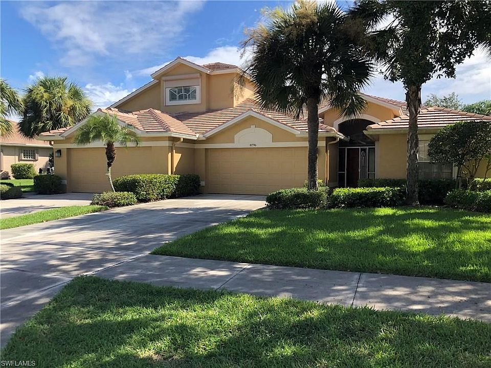 Spacious, two story villa with soaring ceilings. Located in the gated, premier golf community of Cedar Hammock, The turnkey home features two ensuite bedrooms plus another half-bath and two dens. The home has been recently painted. The floors are a mix of tile and newly installed wood. The first floor den has a pull out couch for extra guests. The second floor overlooks the main living space and is like a separate suite having both a living area as well as a bedroom and full bath. You have an in-house laundry room. There's a two car attached garage. There is a heated pool and spa. All windows have accordion shutters. The home overlooks a pond, the golf course and a nearby wooded area. Cedar Hammock has community pools, tennis and a fitness facility. The clubhouse offers an excellent restaurant open for lunch and dinner. Golf is available for an additional fee. This meticulously maintained home offers truly delightful living.