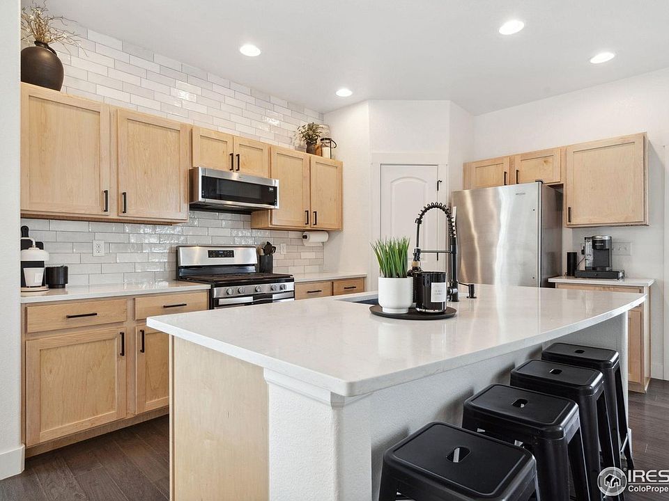 Convenient location, thoughtful design, 3 living areas, and a private office! Located within the Windsor School District, this 5-bed, 4-bath home offers plenty of space, Pinterest-perfect design elements, and flexibility for how ~you~ really live. The main floor features a sun-soaked open layout, centered around a sleek kitchen with quartz counters and stainless appliances. Step out onto the spacious deck, which overlooks the lot and beautifully maintained open space. Did I mention mountain views? Upstairs, the primary suite is a true retreat with a spa-like 5-piece bath and large walk-in closet. Downstairs, the fully finished walk-out basement offers serious bonus space, including a cozy wet bar, custom bathroom with rain shower, and a private, non conforming 5th bedroom that's large and comfortable. With nearby trails, parks, and easy access to commuter routes, this home checks all the boxes for Colorado living done right. Ready to take a look? Let's make it happen.