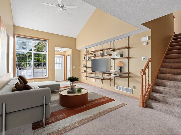 Welcome to this inviting townhome with thoughtfully designed living space. Featuring a bright, open layout with vaulted ceilings, this home combines comfort and functionality in a desirable Blaine location. The main level boasts an open concept living and dining area, highlighted by a cozy gas fireplace and plenty of natural light. The kitchen comes fully equipped with ample cabinetry. A walk-in closet and additional storage ensure everything has its place. Upstairs you’ll find spacious bedrooms, a versatile loft, and generous closet space. The primary suite offers comfort and privacy, while the additional rooms provide flexibility for family, guests, or a home office. Enjoy the ease of in-unit laundry, central air, and forced-air heating. A finished lower level adds extra living space, perfect for entertaining or relaxing. The attached two-car garage offers direct entry, storage, and convenience year-round. Outside, you’ll appreciate a quiet community setting with maintained grounds and access to nearby parks, schools, shopping, and major highways. The monthly HOA covers lawn care, snow removal, and exterior maintenance, leaving you free to enjoy a low-maintenance lifestyle. Seller is offering to pay 3% in seller paid closing costs!