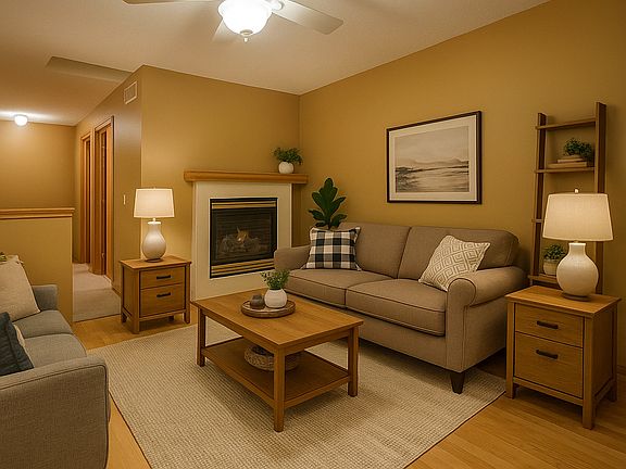Seller is offering to pay 3% in seller paid closing costs! Could be used to fund upgrades, pay for closing costs, or buy down the rate! Welcome to this inviting 2-story townhome offering nearly 1,600 sq. ft. of thoughtfully designed living space. Featuring a bright, open layout with vaulted ceilings, this home combines comfort and functionality in a desirable Blaine location. The main level boasts an open concept living and dining area, highlighted by a cozy gas fireplace and plenty of natural light. The kitchen comes fully equipped with ample cabinetry. A walk-in closet and additional storage ensure everything has its place. Upstairs you’ll find spacious bedrooms, a versatile loft, and generous closet space. The primary suite offers comfort and privacy, while the additional rooms provide flexibility for family, guests, or a home office. Enjoy the ease of in-unit laundry, central air, and forced-air heating. A finished lower level adds extra living space, perfect for entertaining or relaxing. The attached two-car garage offers direct entry, storage, and convenience year-round. Outside, you’ll appreciate a quiet community setting with maintained grounds and access to nearby parks, schools, shopping, and major highways. The monthly HOA covers lawn care, snow removal, and exterior maintenance, leaving you free to enjoy a low-maintenance lifestyle.